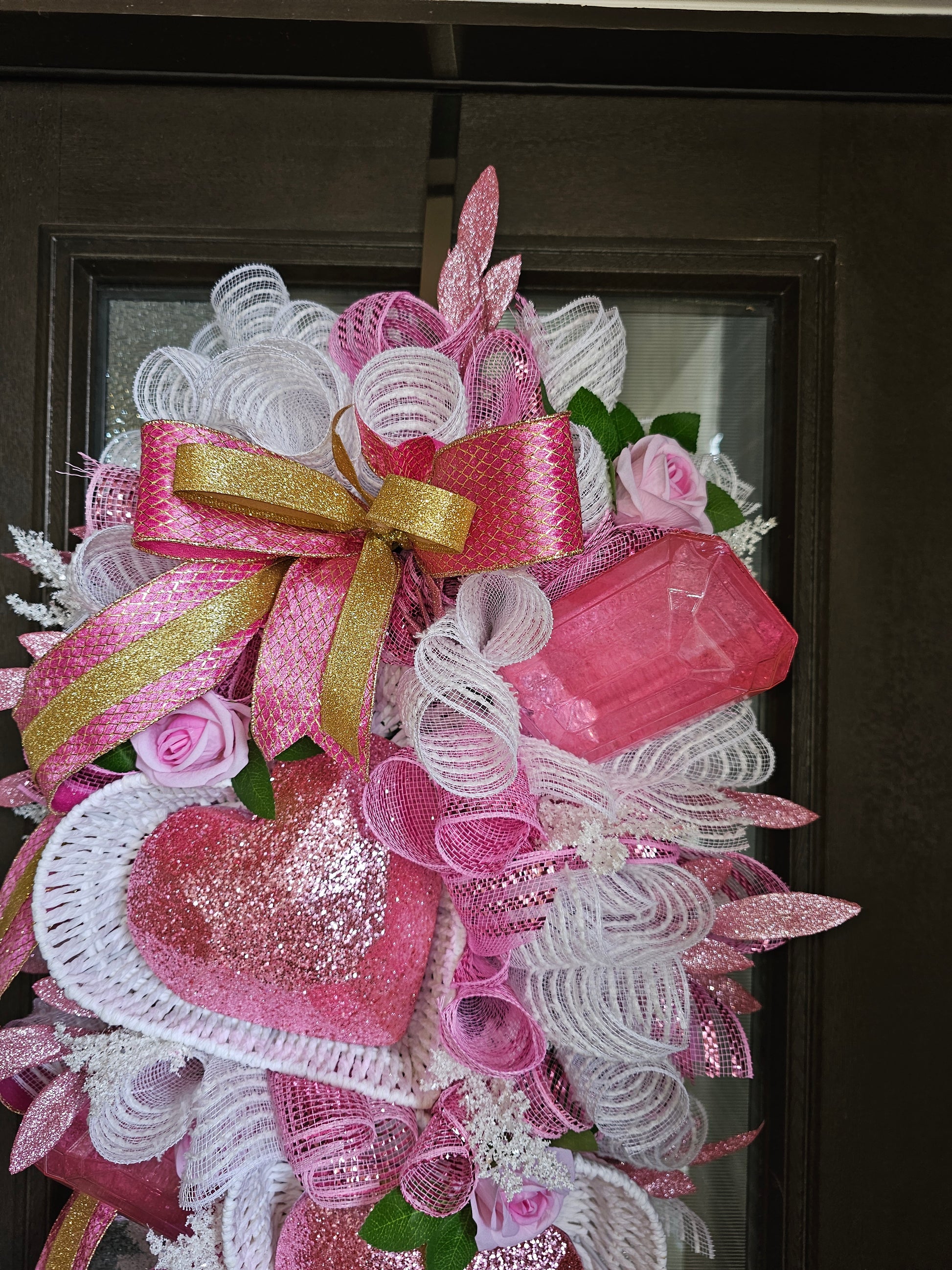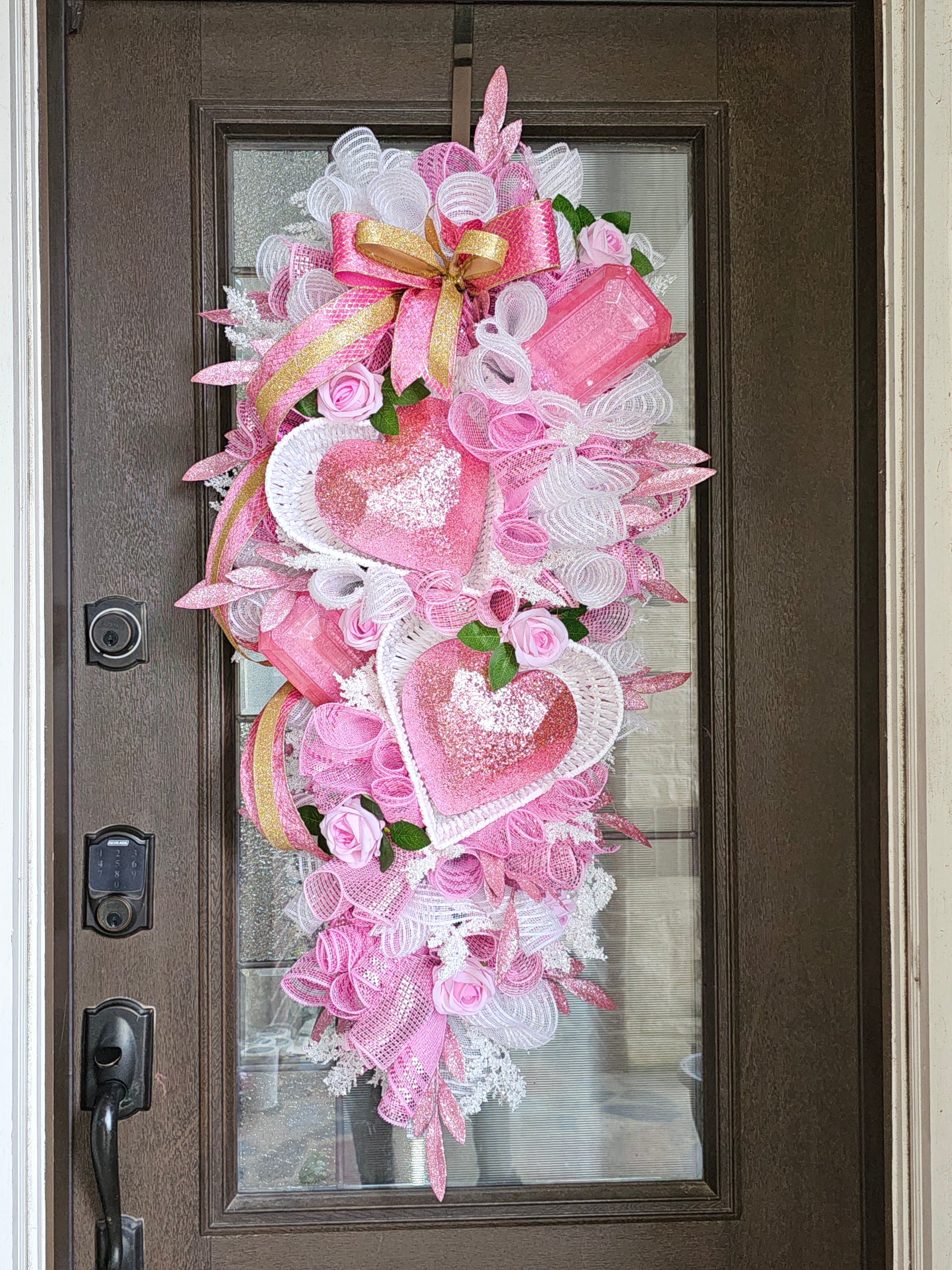 Finished with a graceful pink-and-gold bow and cascading ribbons, this swag offers movement, texture, and timeless Valentine charm. Perfect for front doors, entryways, or interior décor, it’s a sweet statement piece that feels warm, joyful, and full of love.