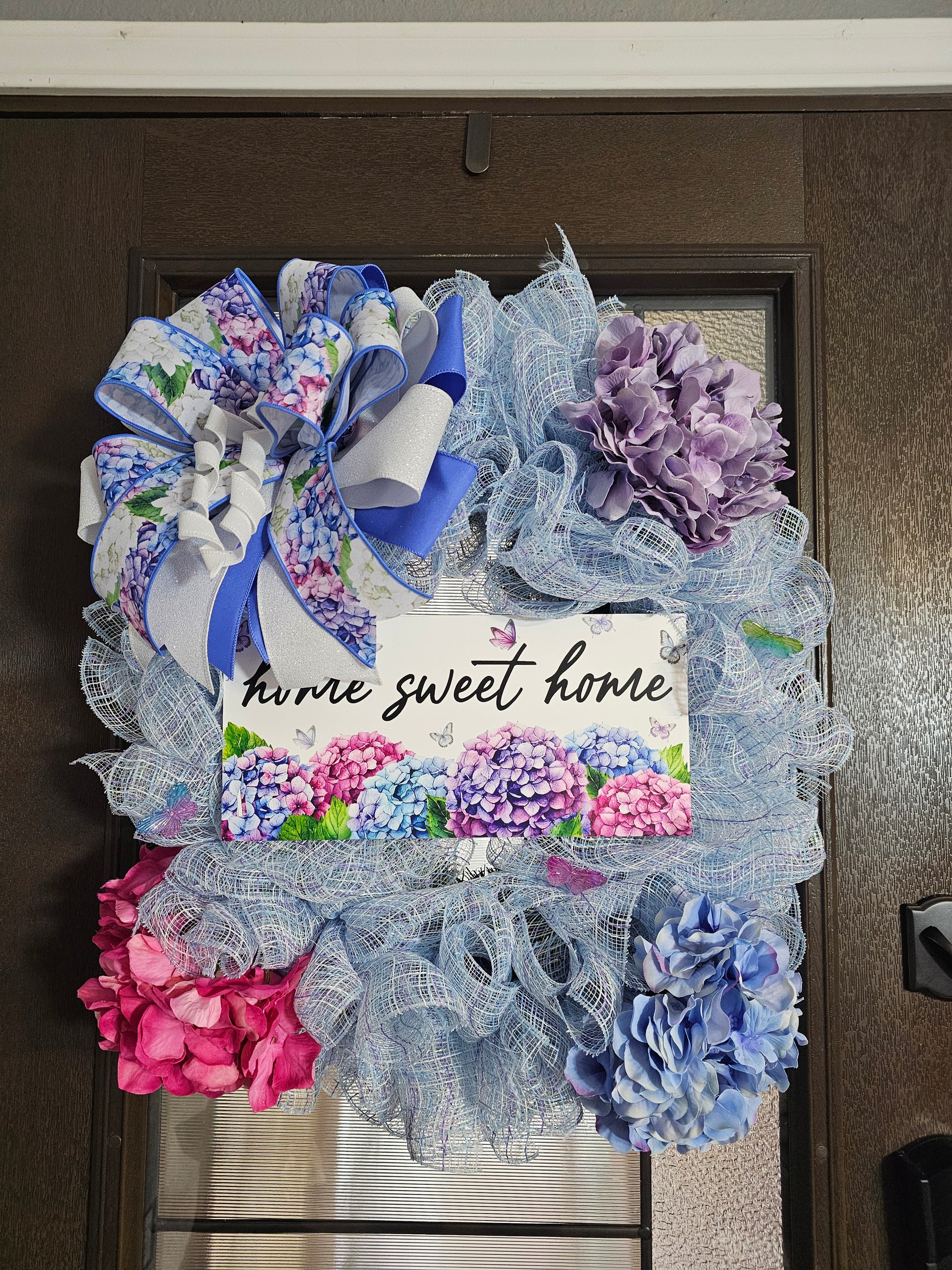 Welcome guests with timeless beauty using this “Home Sweet Home” Hydrangea Wreath, crafted with premium deco mesh, soft pastel florals, and lush hydrangea accents. Designed to elevate both everyday front door décor and interior home styling, this wreath blends elegance with warmth.